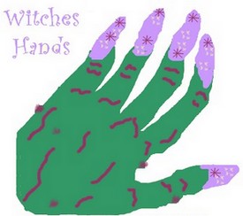 How to make green Halloween handprint witch hands with fancy fingernails - warts ...