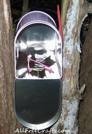Whether you use a faux mail box, or a decorated tin can, or a recycled tea box mail box, the principle remains the same: simply choose a little present from the fairies to place inside and then nestle the containers in a special place outside in the garden.