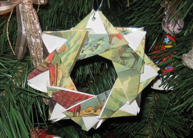 Recycle your most colorful greeting cards to make origami Christmas card stars.