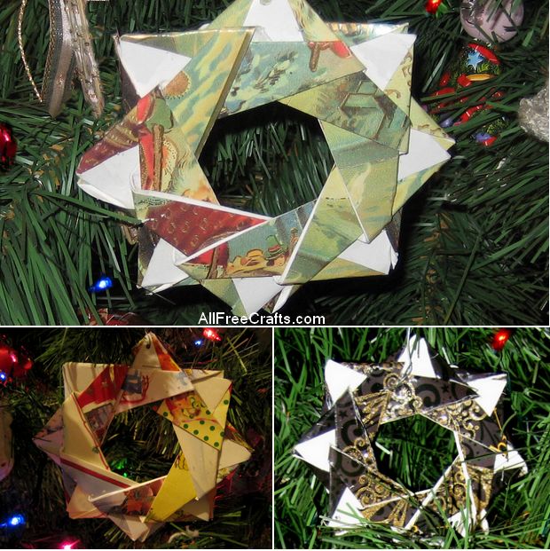 Because Christmas cards are usually thicker than origami paper, the segments will not be as flat as the video shows when assembled into the star. Of course, you could try recycling Christmas wrapping paper for a flatter version.